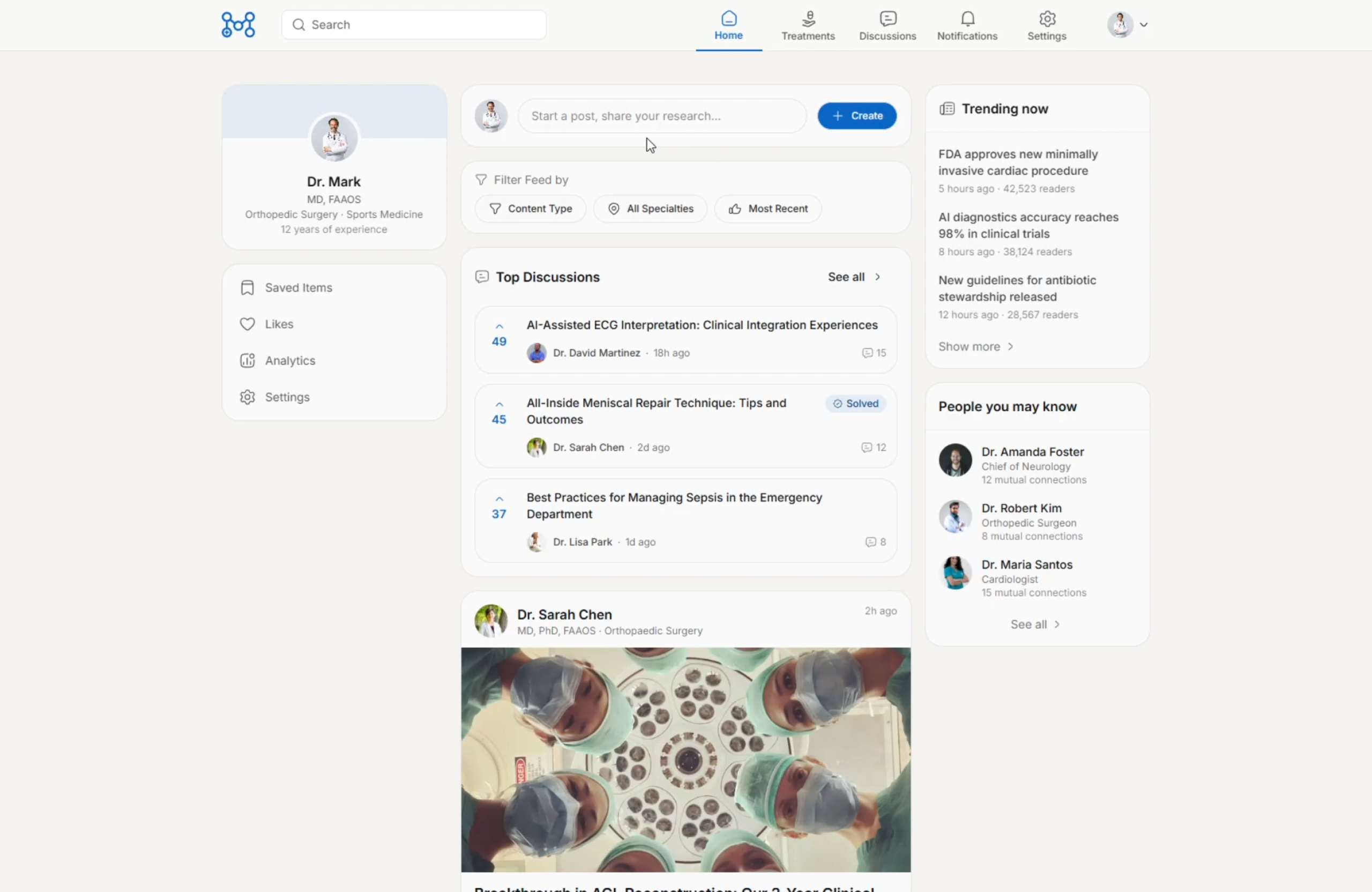 Engage in specialty-focused discussions with NPI-verified physicians in moderated forums